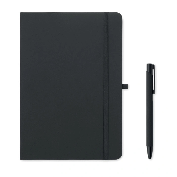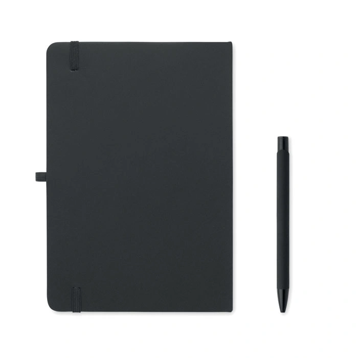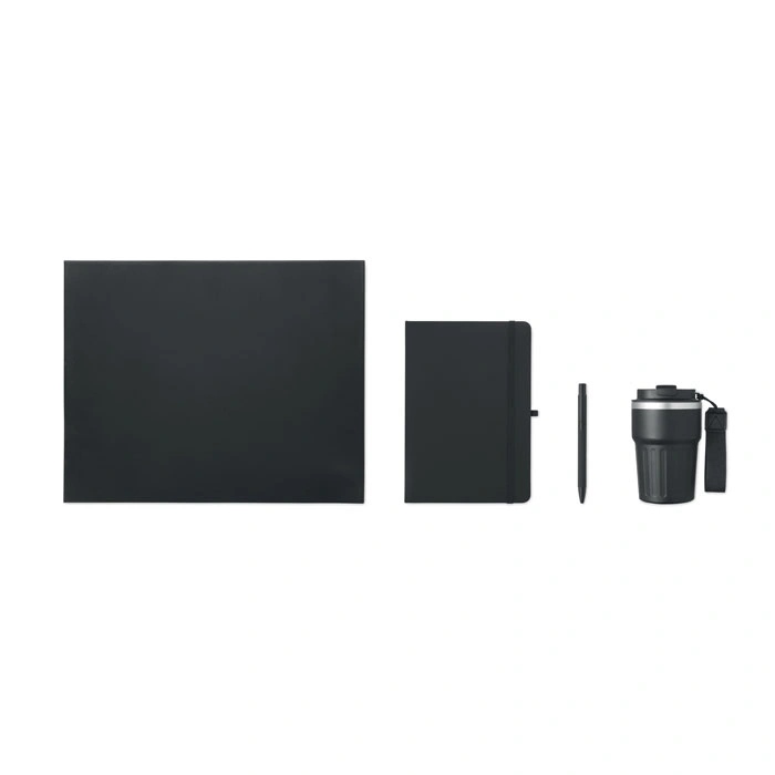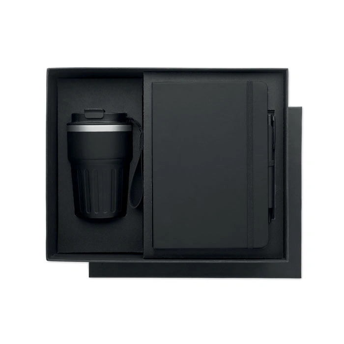 Papildus blociņam šis komplekts ietver arī stilīgu lodīšu pildspalvu, kas izgatavota no otrreizēji pārstrādāta alumīnija, tādējādi piešķirot rakstāmpiederumam ne tikai izturību un vieglumu, bet arī ekoloģisku vērtību. Rakstīšanas pieredzi papildina komplektā esošais 350 ml tilpuma termo trauks, kas izgatavots no dubultsienu pārstrādāta nerūsējošā tērauda, nodrošinot dzēriena temperatūras saglabāšanu ilgākā laika posmā. Termoss ir aprīkots ar praktisku PP materiāla vāciņu un ērtu siksniņu pārnēsāšanai, padarot to par ideālu biedru gan birojā, gan dodoties ceļā.