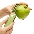 Izvēloties salokāms dārzeņu mizotājs FLEXPEEL, jūs iegūstat augstas kvalitātes instrumentu ar asu nerūsējošā tērauda asmeni. Tērauds nodrošina nevainojamu un vieglu mizošanas procesu dažādiem dārzeņiem un augļiem, saglabājot asumu ilgtermiņā un neietekmējot produktu garšas īpašības. Izturīgais plastmasas korpuss ir ergonomiski veidots, lai ērti iegultu plaukstā, nodrošinot stabilu satvērienu un kontroli pat strādājot ar mitrām rokām. Spilgti zaļā krāsa ne tikai piešķir virtuvei enerģisku akcentu, bet arī padara mizotāju viegli pamanāmu starp citiem piederumiem.