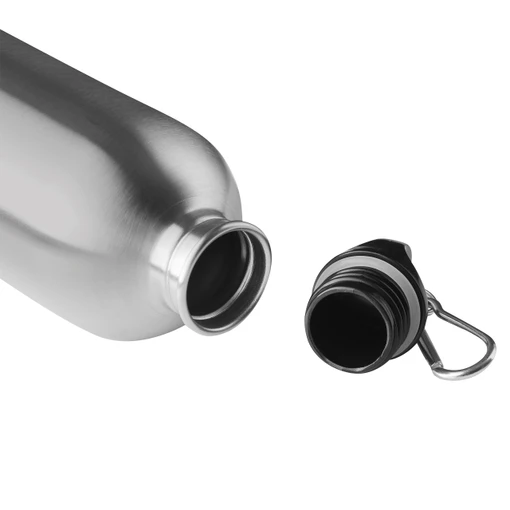 Lietošanas ērtums ir šīs dzeršanas pudele SMALLTRANSIT dizaina pamatā. Melnais plastmasas skrūvējamais vāciņš ir aprīkots ar uzticamu silikona blīvgredzenu, kas garantē pilnīgu aizsardzību pret noplūdēm, pasargājot jūsu personīgās mantas no mitruma. Funkcionalitāti papildina integrētais nešanas rokturis, atslēgu riņķis un izturīga alumīnija karabīne, kas ļauj pudeli ērti piestiprināt pie somas, jostas cilpas vai ekipējuma (jāņem vērā, ka karabīne paredzēta tikai stiprināšanai un nav piemērota kāpšanas sportam).