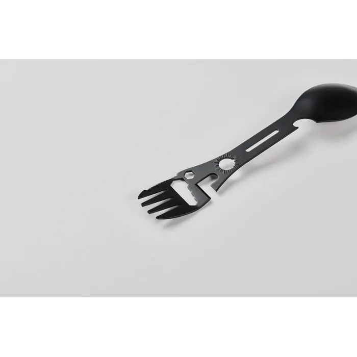 Funkcijas: Karote, dakšiņa, robots nazis, pudeļu un bundžu attaisāmais, regulējama uzgriežņu atslēga, sešstūra atslēga.