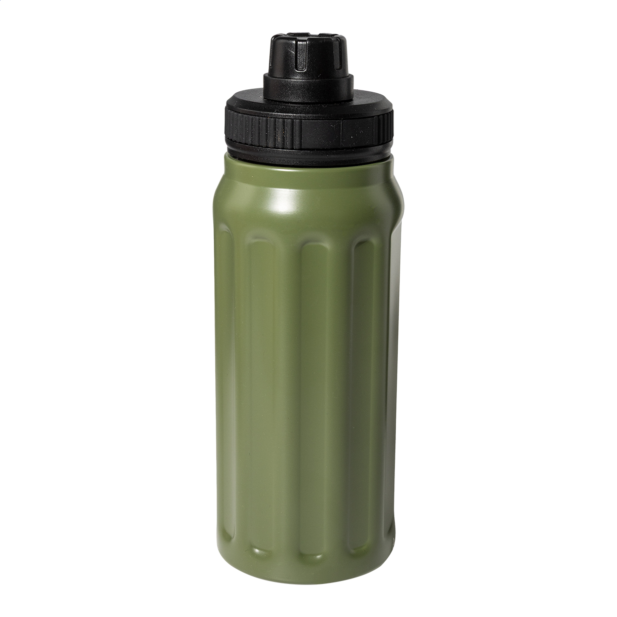 Dubultsienu vakuuma pudele no pārstrādāta, nerūsējošā tērauda ar vertikālām rievām. Tai ir PP vāciņš ar iebūvētu nēsāšanas rokturi, tilpums 540 ml.