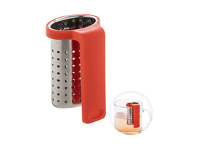 Tērauda tējas sietiņš ar praktisku turētāju no pārstrādāta ABS. Ērti piestiprināms pie krūzes malas. Izmērs: 40×60×38 mm.
