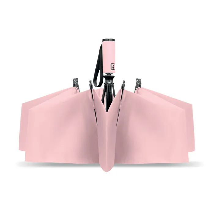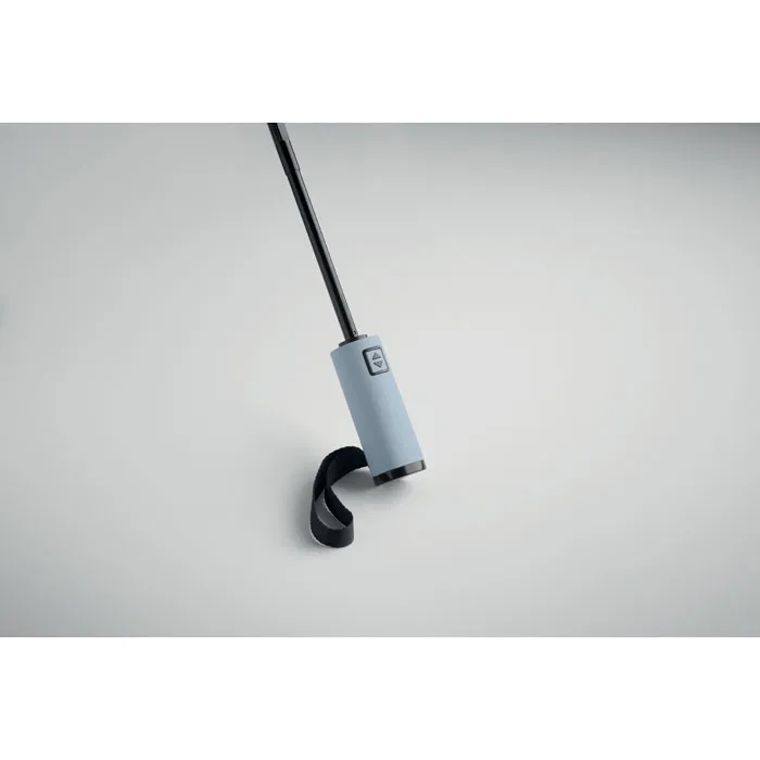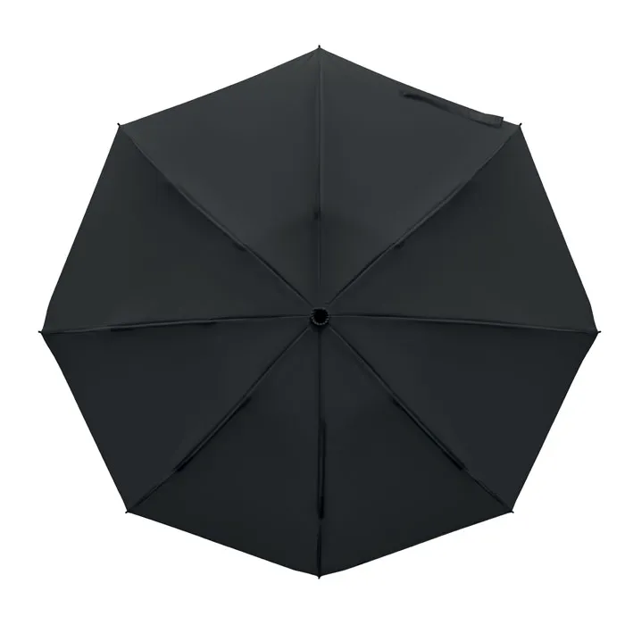 Lietussarga kupols ir izgatavots no 190T RPET pongee auduma, kas ir ne tikai īpaši blīvs un ūdensnecaurlaidīgs, bet arī videi draudzīgs risinājums, jo materiāls ir iegūts no pārstrādātas plastmasas. Konstrukcijas pamatā ir izturīgs, pilnībā melns metāla rāmis ar stikla šķiedras ribām, kas nodrošina konstrukcijas elastību un ilgmūžību. Lietošanas ērtumu paaugstina pilnībā automātiskā atvēršanas un aizvēršanas funkcija, kas ļauj lietussargu vadīt ar vienas pogas spiedienu, savukārt gumijotais ABS materiāla rokturis garantē drošu un patīkamu satvērienu pat mitros laikapstākļos.