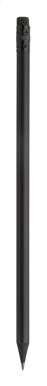 Koka zīmulis ar melnu, metālisku pārklājumu un melnu dzēšgumiju. Asināts, cietības pakāpe HB.