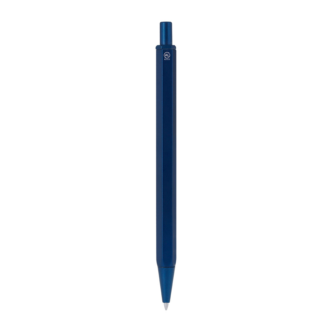 Eleganta pildspalva no pārstrādāta alumīnija ar sešstūra formas korpusu. Spiežams mehānisms ir no pārstrādātas ABS plastmasas, Zilas krāsas tinte. Pārstrādāts alumīnijs ir materiāls ar gandrīz neierobežotām pārstrādes iespējām, nezaudējot sākotnējās īpašības un patērējot mazāk enerģijas. GRS (Global Recycled Standard) sertifikāts apliecina materiāla pārstrādāto izcelsmi.