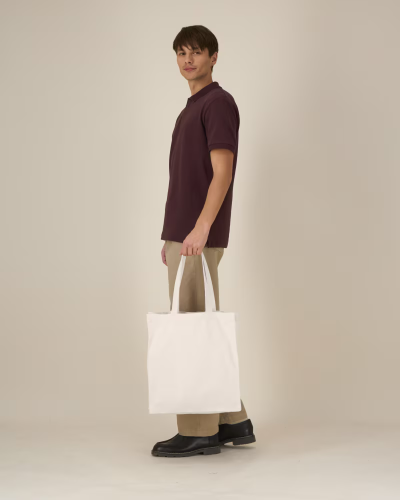 Iepirkuma maisiņš ar apdruku Mid Tote Bag ir stilīgs vidēja blīvuma auduma maisiņš, kas radīts, lai ērti pārnēsātu ikdienas svarīgākās lietas gan rokās, gan uz pleca. Šis konkrētais iepirkuma maisiņš ar apdruku Mid Tote bag ir izgatavots no 220 GSM blīva audekla (canvas), kas sastāv no 100% pārstrādātas kokvilnas. Tas piedāvā izcilu līdzsvaru starp vieglo un smago audumu kategorijām, nodrošinot telpiskumu un izturību, pateicoties tā paplašinātajai apakšai un sāniem.