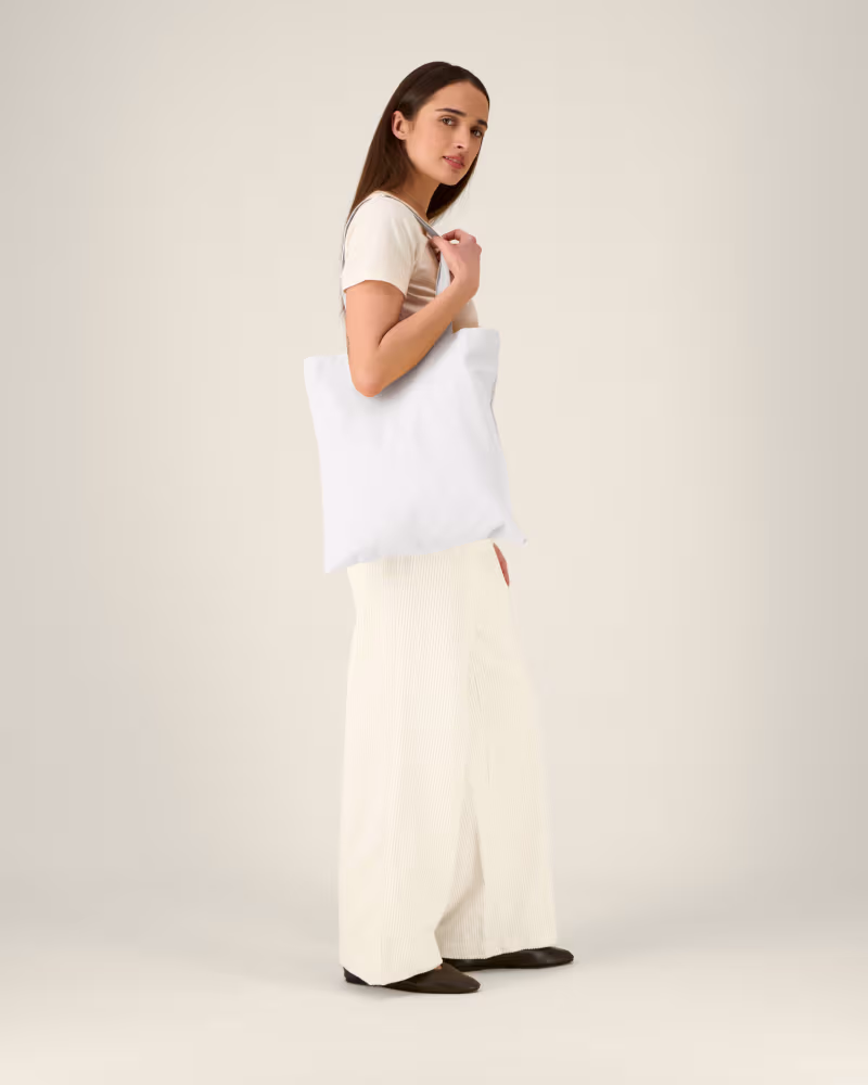 Šis iepirkuma maisiņš ar apdruku Light Tote Bag ir radīts kā universāla “kanva” radošām izpausmēm. Tā gludais auduma pinums (plain weave) ir izcili piemērots detalizētiem dizainiem. Garie rokturi ļauj maisiņu ērti nēsāt uz pleca, nodrošinot brīvību kustībām. Turklāt audums ir iepriekš mazgāts (fabric washed), kas nozīmē, ka tas ir mīksts jau pirmajā lietošanas reizē un saglabā savu struktūru ilgtermiņā.
