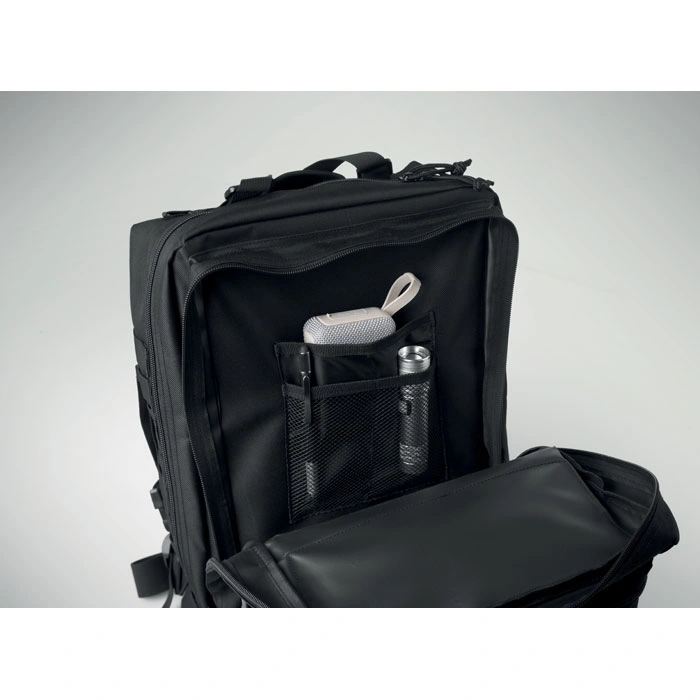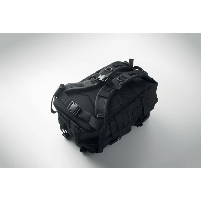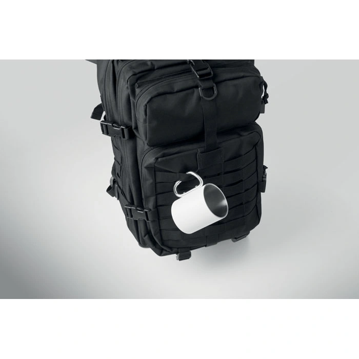 600D RPET poliesters: Mugursomas pamatmateriāls ir iegūts no otrreizēji pārstrādātām plastmasas pudelēm, nodrošinot augstu nodilumizturību un ilgu kalpošanas laiku.