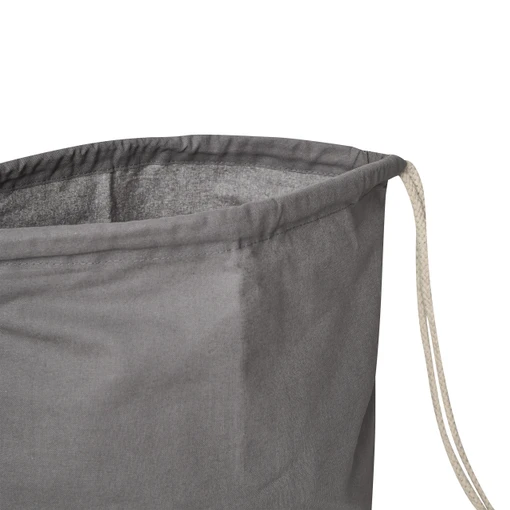 Soma ir izgatavota no stingras un blīvas kokvilnas, kuras svars ir aptuveni 140 g/m², kas nodrošina materiāla noturību pret nodilumu un spēju izturēt ikdienas slodzi. Divas izturīgās auklas rokturu vietā kalpo kā drošs aizdares mehānisms, kas, somu savelkot, neļauj saturam izkrist un vienlaikus pielāgojas nēsātāja plecu platumam. Melnā krāsa piešķir šim modelim universālu un modernu estētiku, kas viegli pieskaņojama jebkuram apģērba stilam, sākot no sportiska līdz pat ikdienas lietišķajam tēlam.