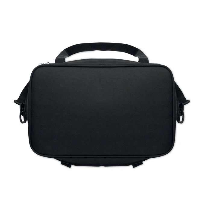 600D RPET ar PU pārklājumu: Somas ārpuse ir izgatavota no pārstrādāta poliestera (RPET), kas papildināts ar poliuretāna (PU) pārklājumu. Tas padara somu ne tikai videi draudzīgu, bet arī īpaši izturīgu pret nodilumu un ūdeni atgrūdošu.