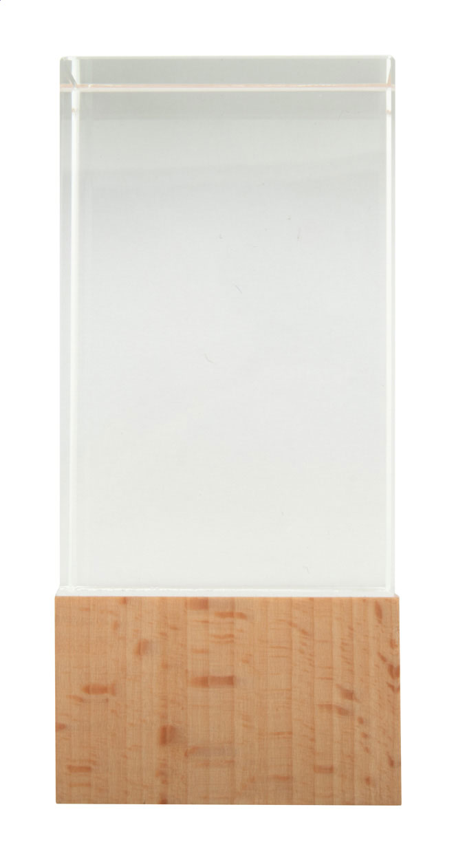Stikla trofeja ar bērza koka pamatni. Izmērs: 50×110×50 mm.