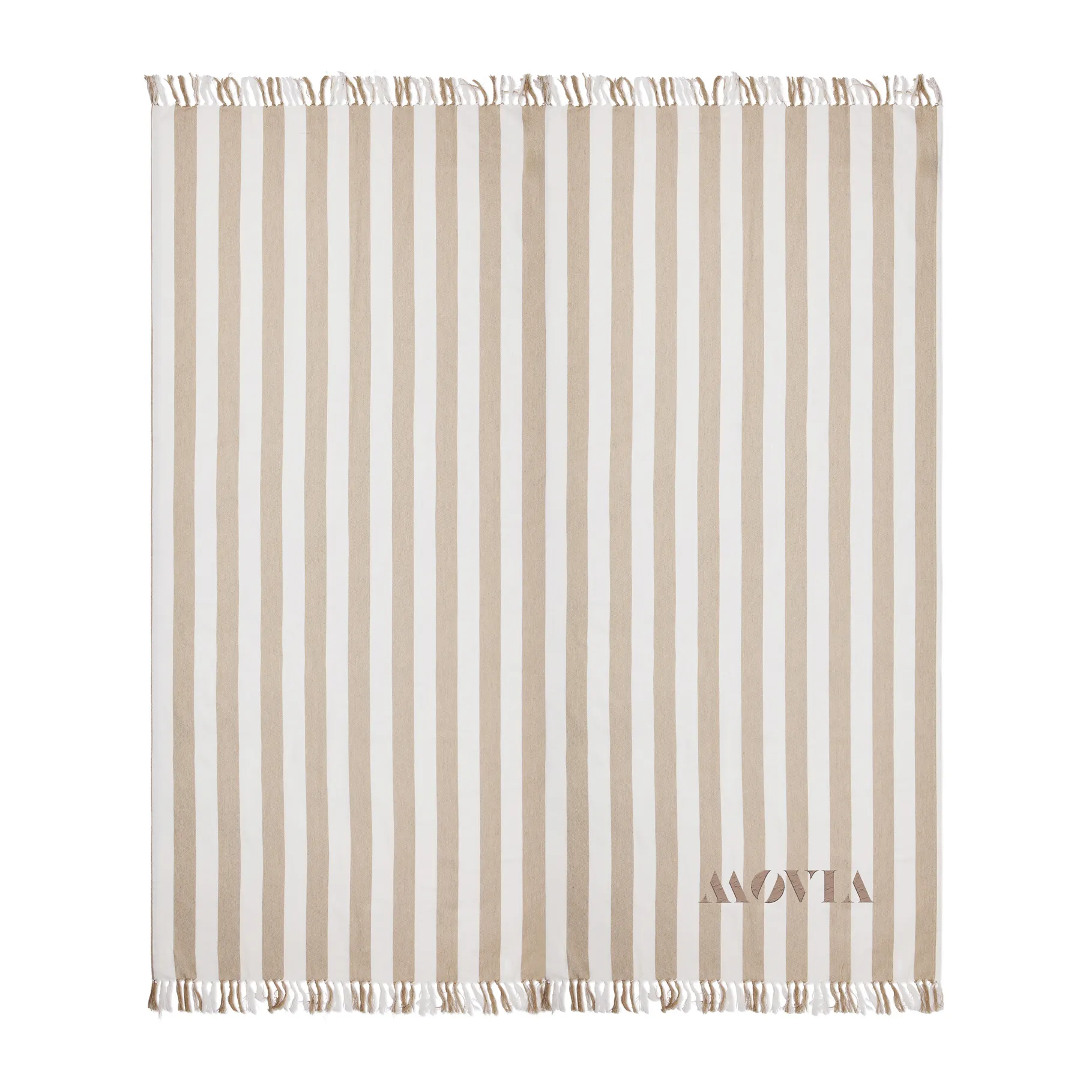 VINGA Ornos GRS hammam ģimenes dvielis ir radīts, lai sniegtu komfortu un plašumu jūsu kopīgajiem atpūtas brīžiem. Ar tā iespaidīgajiem 180 x 180 cm izmēriem šis dvielis ir ideāli piemērots koplietošanai ar mīļajiem – neatkarīgi no tā, vai atpūšaties smilšainā pludmalē, baudāt sauli pie baseina vai rīkojat pikniku parkā. Klasiskais divu toņu svītru raksts un elegantās bārkstis dvieļa galos piešķir tam tradicionālu hammam estētiku, kas apvienota ar modernu un praktisku izpildījumu.