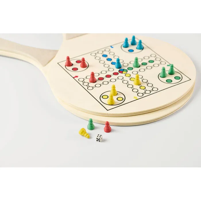 Komplektācija: 2 koka raketes, 1 TPR bumbiņa, spēļu kauliņi un figūras.