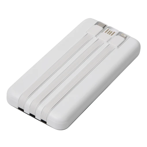 Powerbanka POWERSTOCK 10 000 mAh ar integrētiem uzlādes kabeļiem