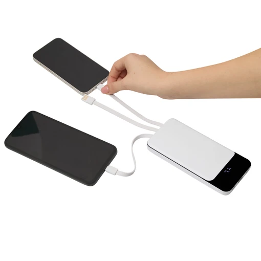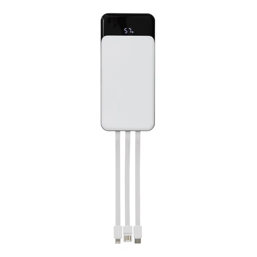 Galvenā šī modeļa priekšrocība ir trīs integrēti uzlādes kabeļi, kas ir glīti iestrādāti ierīces aizmugurē. Jūsu rīcībā ir USB Type-C, Lightning (Apple ierīcēm) un USB Type-A savienotāji, kas nozīmē, ka jūs varat uzlādēt gandrīz jebkuru mūsdienu viedierīci bez papildu kabeļu meklēšanas. Powerbanka POWERSTOCK ir aprīkota ar 10 000 mAh augstas veiktspējas litija akumulatoru, kas piedāvā pietiekamu jaudu, lai nodrošinātu vairākus uzlādes ciklus jūsu telefonam. Lai lietošana būtu pilnīgi caurskatāma, ierīcei ir digitāls displejs, kurā akumulatora līmenis tiek attēlots precīzi procentos, ļaujot jums vienmēr zināt, cik daudz enerģijas ir atlicis.