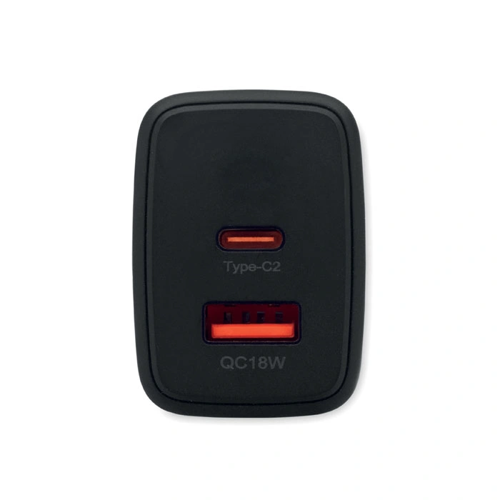 Dual Port: Aprīkots ar vienu USB Type-C un vienu USB-A portu, ļaujot lādēt divas ierīces vienlaicīgi.