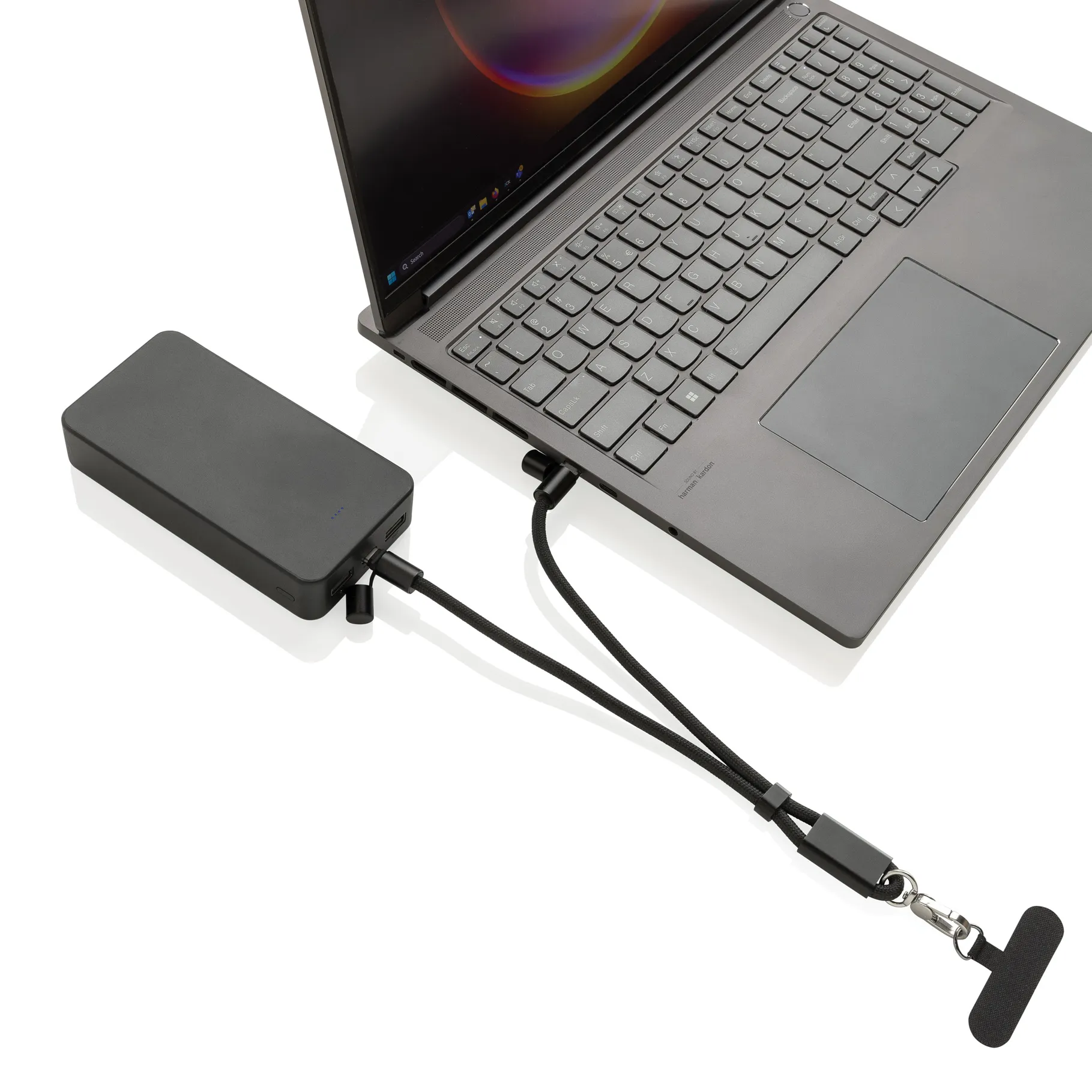 Izvēloties šo aksesuāru, jūs iegūstat maksimālu funkcionalitāti. LoopAmp RCS RPET regulējama telefona rokas siksniņa un 60W kabelis nodrošina, ka jūsu viedtālrunis, planšetdators vai pat klēpjdators vienmēr būs uzlādēts, pateicoties iespaidīgajai 60W jaudas padevei. Izstrādājuma pamatā ir ilgtspējība – tas ir izgatavots no sertificētiem pārstrādātiem materiāliem, tādējādi samazinot ietekmi uz vidi un veicinot aprites ekonomiku.
