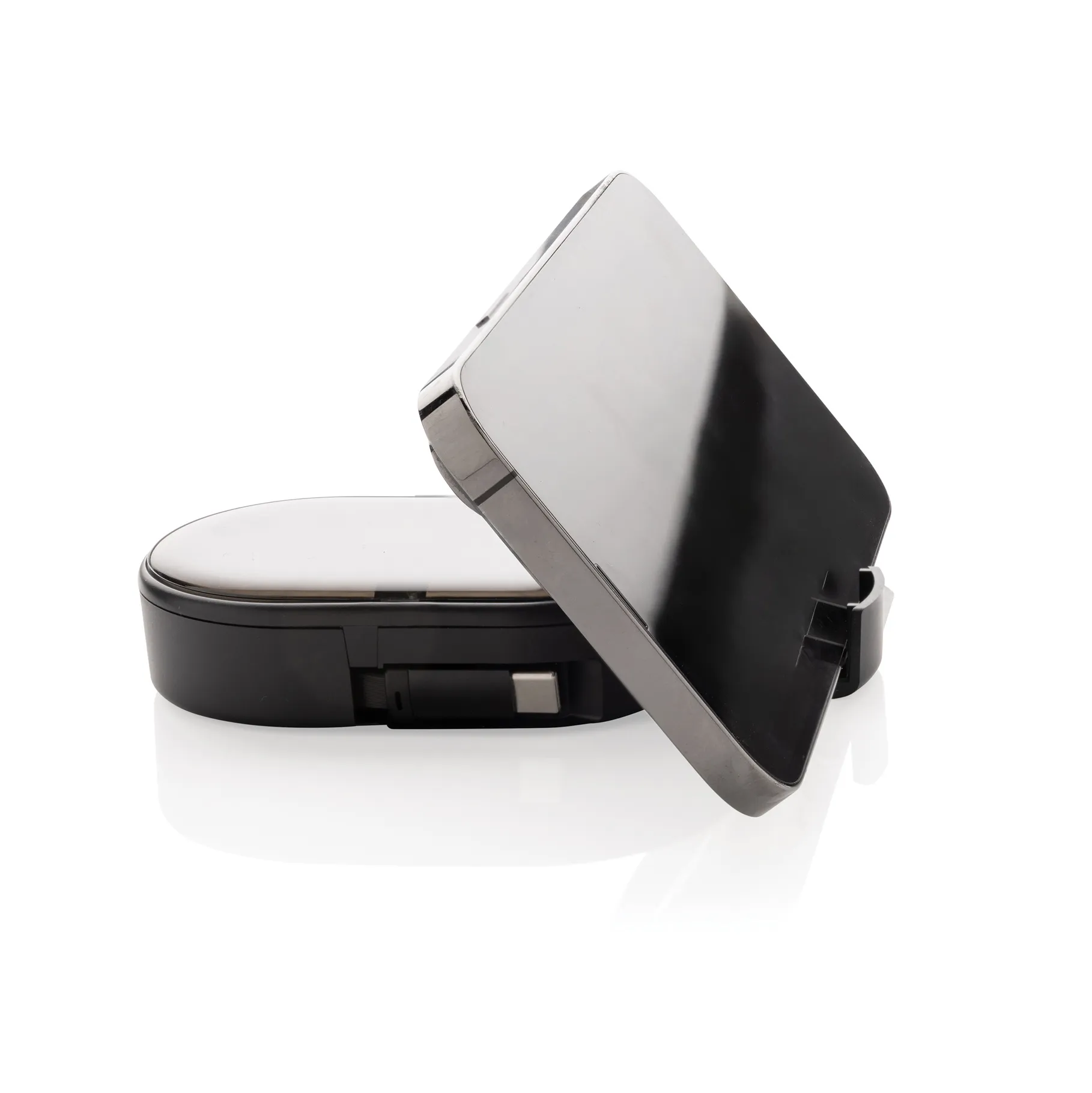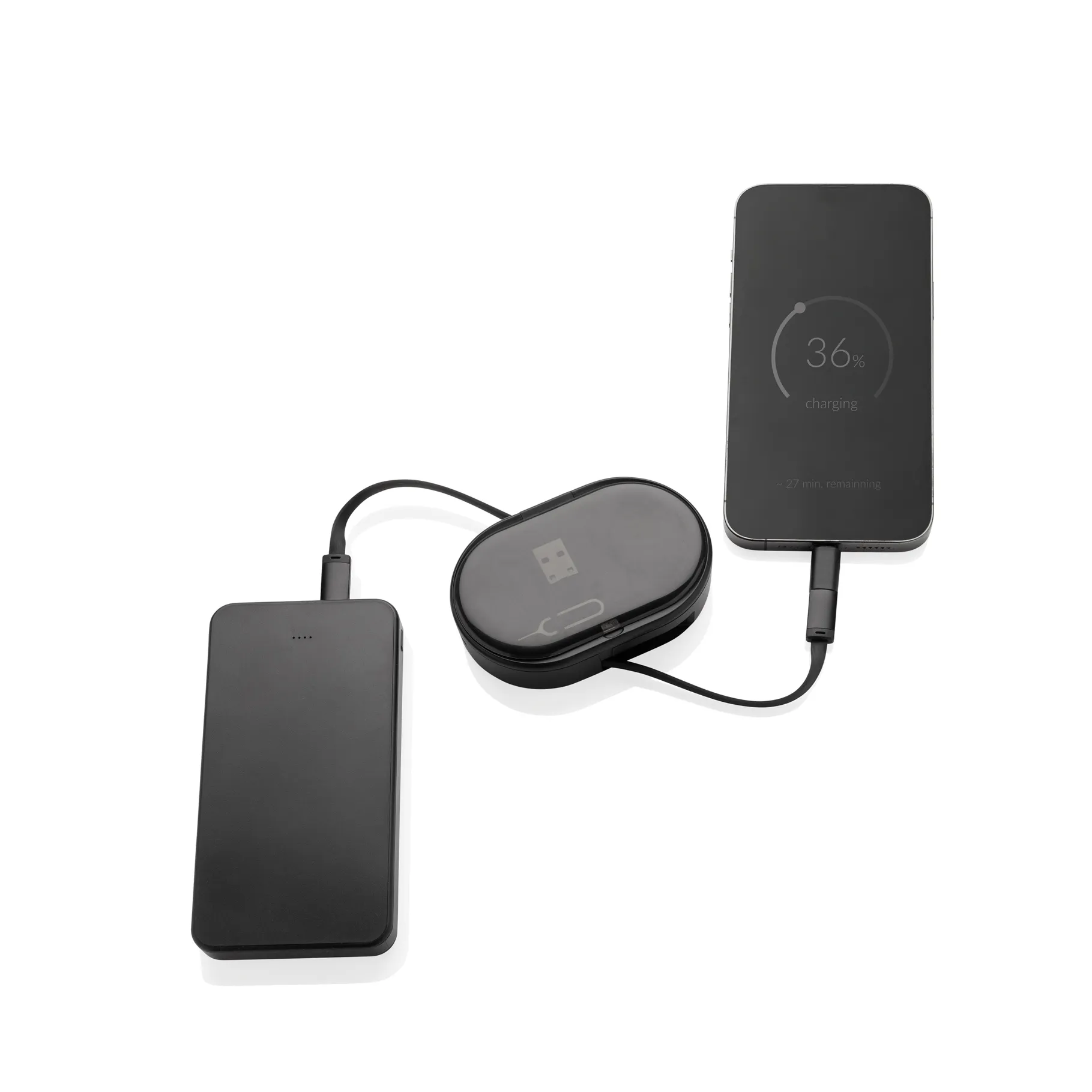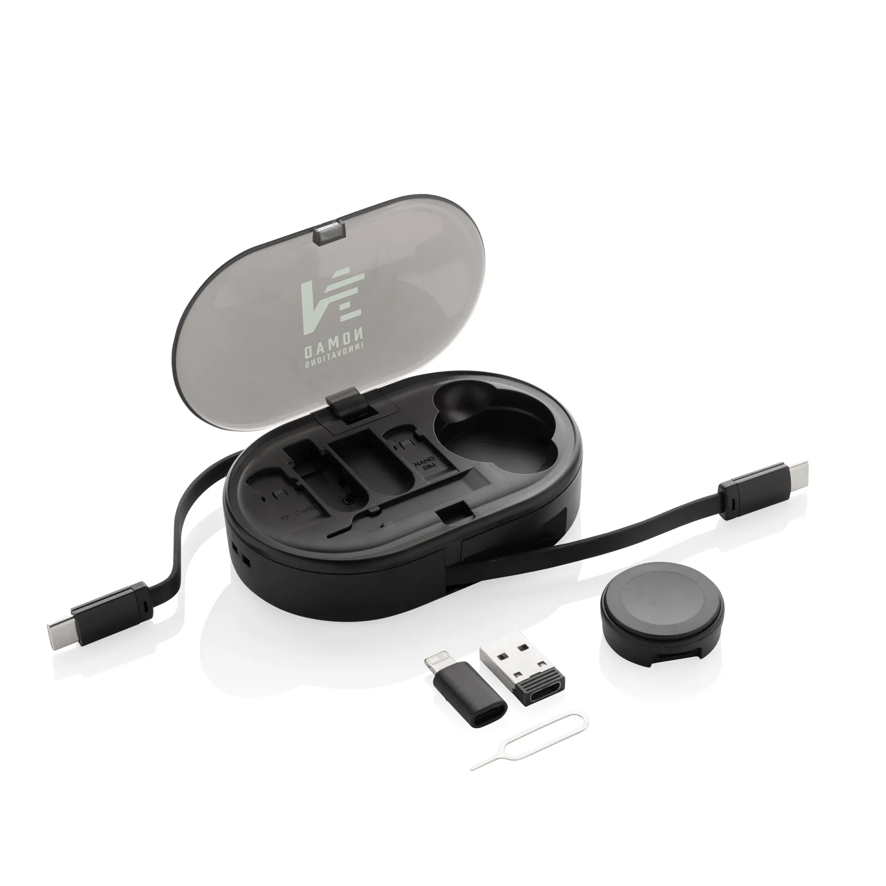 Chargevix komplekts ir vairāk nekā tikai lādētājs – tā ir pārnēsājama vadības stacija. Korpusa matēti melnais dizains ar caurspīdīgo vāciņu ļauj uzreiz redzēt visas komplektācijā iekļautās pārejas. Galvenais ievelkamais kabelis nodrošina 80 cm garumu, kas ir optimāls lietošanai gan automašīnā, gan pie biroja galda, savukārt automātiskais ievilkšanas mehānisms novērš vadu sapīšanos.