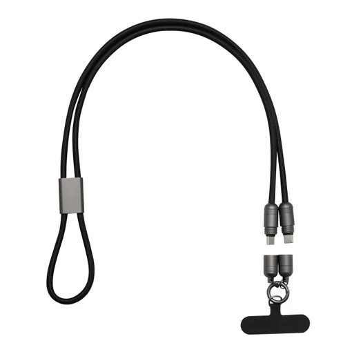 Multifunkcionāls uzlādes un datu pārsūtīšanas kabelis LONGCARRY ir inovatīvs aksesuārs, kas apvieno modernākās uzlādes tehnoloģijas ar praktisku ikdienas aksesuāru. Šis multifunkcionāls uzlādes un datu pārsūtīšanas kabelis LONGCARRY ir radīts tiem, kuri pastāvīgi atrodas kustībā un nevēlas kompromisus starp ierīču drošību un to gatavību darbam. Ar savu ievērojamo 108 cm garumu tas kalpo ne tikai kā efektīvs savienojuma vads, bet arī kā stilīga un izturīga telefona kakla lenta jeb “lanyard”, kas ļauj tālruni nēsāt ērti pāri plecam vai ap kaklu.