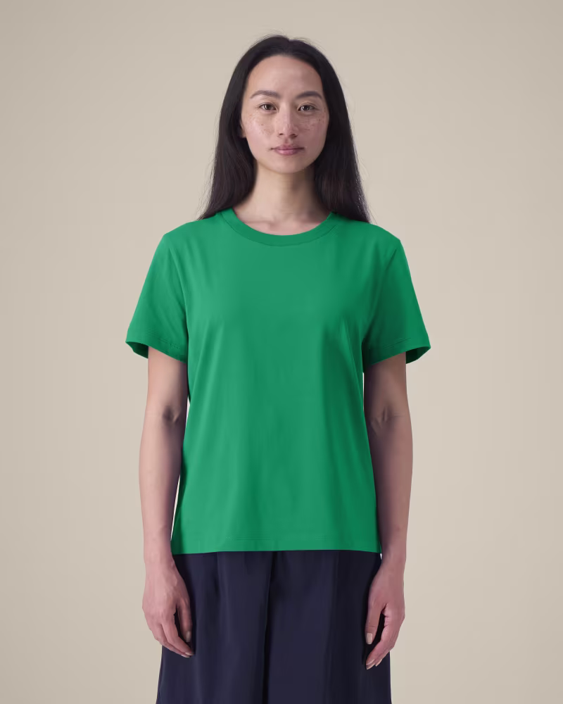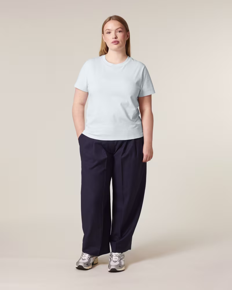 Ar ko Stella Muser atšķiras no citiem modeļiem? Tas ir “Iconic” modelis ar 180 GSM blīvumu un sieviešu Medium Fit piegriezumu, kas saskaņots ar vīriešu/unisex Creator 2.0.
