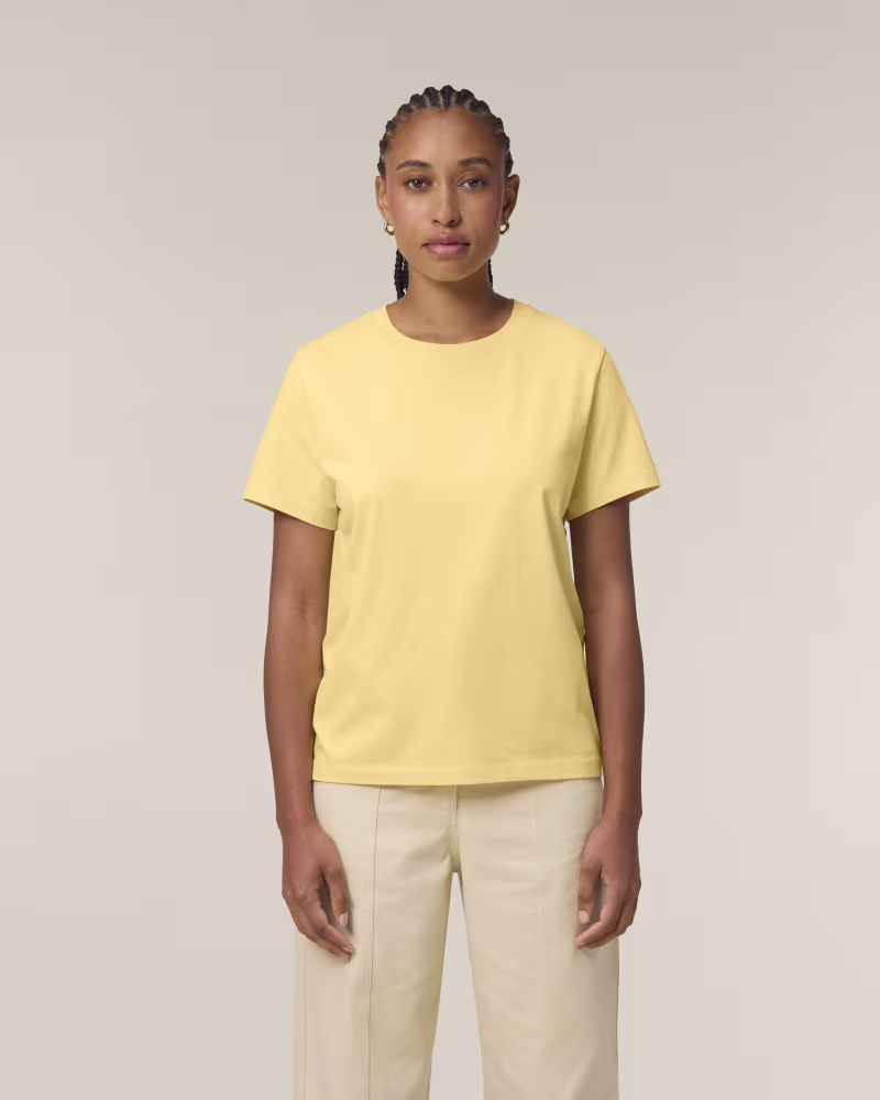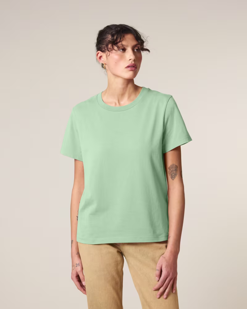 T-krekls ar apdruku Stanley/Stella Stella Muser ir ikonisks sieviešu modelis, kas izstrādāts, lai piedāvātu perfektu balansu starp klasisku stilu un augstākās klases komfortu. Watermelon SIA, Jūsu ilgtspējīga tekstila eksperts kopš 2004. gada, rekomendē šo modeli kā garderobes pamatelementu, kas pateicoties jaunajai auduma tehnoloģijai, nodrošina izcilu virsmu personalizācijai.