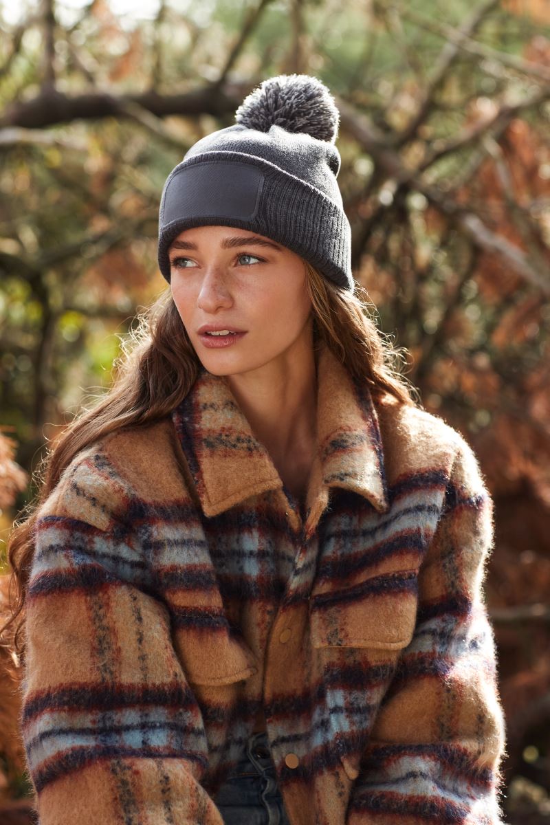 Cepurei ir plata rievota mala, daudzkrāsains bumbulis un dubultais adījums, kas nodrošina papildu siltumu. Kokvilnas tvila Patch (logo aplikācija) (10 x 5 cm) paredzēta ērtai apdrukai vai izšuvumam. Aprīkota ar TearAway etiķeti vienkāršai birkas noņemšanai.