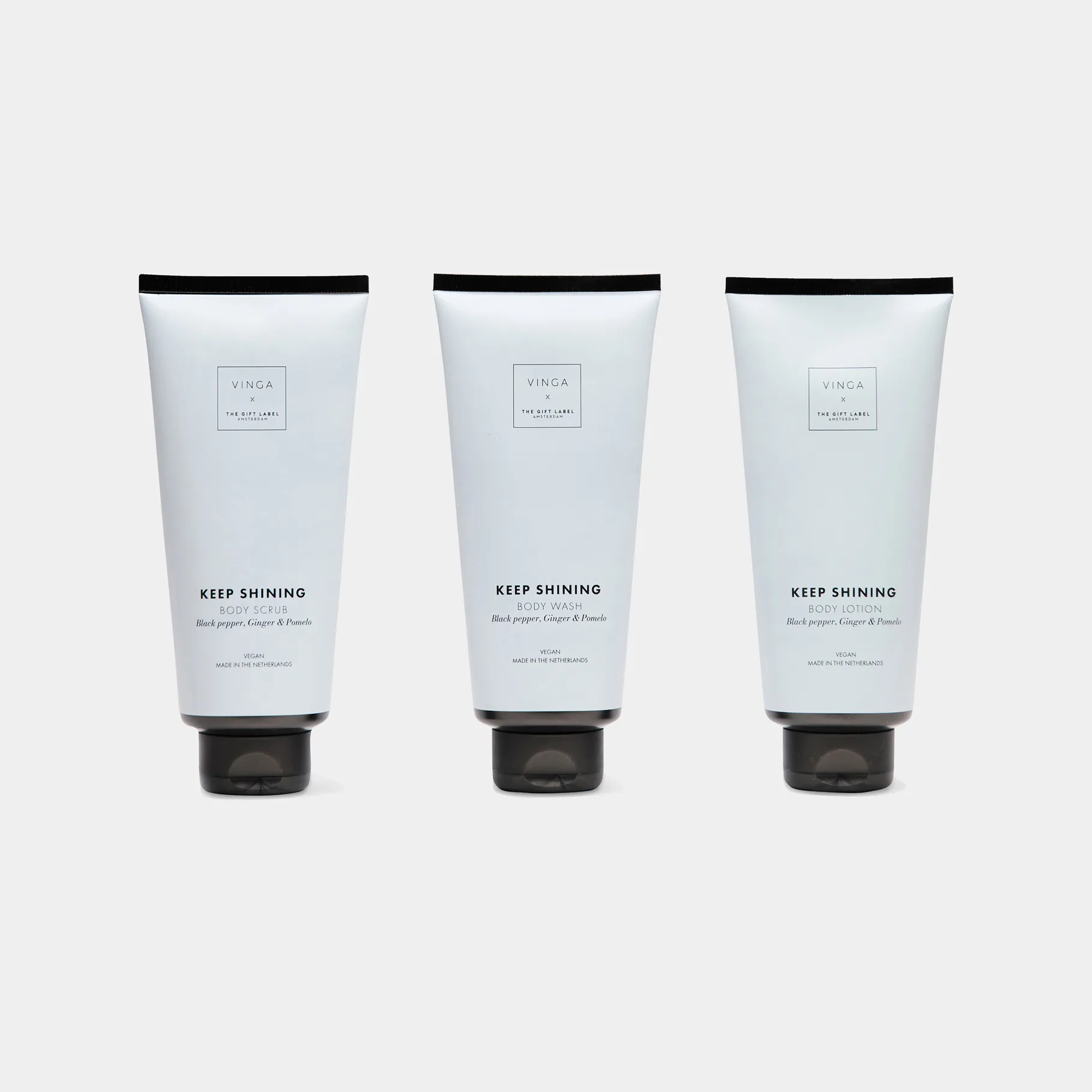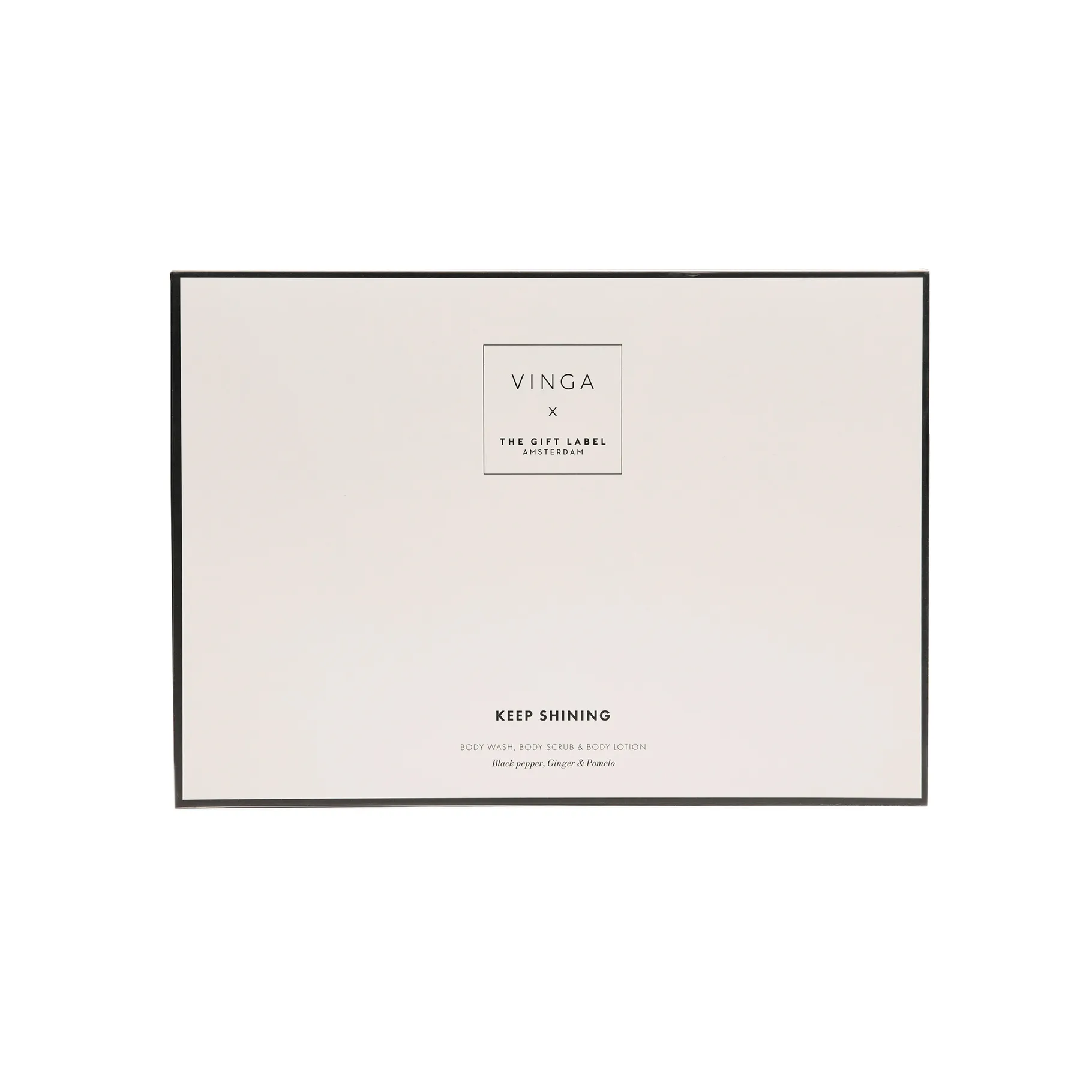 VINGA x TGL sadarbības rezultātā tapušais komplekts piedāvā pilna cikla ķermeņa kopšanu. Dušas želeja maigi attīra ādu, neizsausinot to, savukārt ķermeņa skrubis palīdz atbrīvoties no atmirušajām ādas šūnām, uzlabojot mikrocirkulāciju un sagatavojot ādu mitrināšanai. Rituālu noslēdz ķermeņa losjons, kas ātri iesūcas un atstāj ādu elastīgu un smalki smaržojošu visas dienas garumā.
