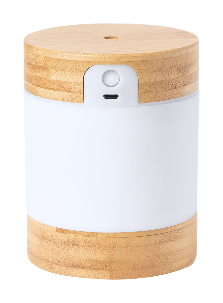 Bambusa galda gaisa mitrinātājs ar LED apgaismojumu. Tvertnes tilpums: 250 ml. Komplektā USB lādētājs. Izmērs: ø90×122 mm.