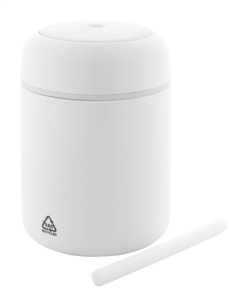 Galda gaisa mitrinātājs no pārstrādāta ABS ar daudzkrāsu LED apgaismojumu. Tvertnes tilpums: 280 ml. Komplektā USB lādētājs. Izmērs: ø78×119 mm.